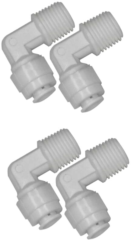 “Elbow fitting is made of acetal copolymer and has tube connectors. This union elbow fitting joins two tubes at an angle to change the direction of flow between the pipes. It is a push-to-connect fitting that accepts the insertion of nylon, soft nylon and polyurethane tube fittings. It is made of acetal copolymer plastic, which has low moisture absorption, high tensile and flexural strength, and is hard and fatigue resistant. The working pressure for this fitting is up to (150) per square inch (psi), Food equipment materials, and use with drinking (potable) water. Pipe fittings are components used for connecting, terminating, controlling flow, and changing the direction of piping in many different industries. Push-to-connect compression fittings do not require tools or sealants, and are useful in installations where a heat source, such as a soldering torch, is prohibited. When purchasing pipe fittings, consider the application, as this will affect material type, shape, size, and required durability. Fittings are available threaded or unthreaded, in many shapes, styles, sizes, and schedules (pipe wall thickness). Push-to-connect fittings and pipe and plastic plumbing systems. 2 Pcs RO Outer Pre Filter Elbow Connector 1/4″” Size Tube x 1/4″” Male Thread……Best 1/4″” Size RO Male Elbow Connector for RO Filter Suited/Compatible for RO all Model which uses 1/4″” Size – Small size RO Tube……. Also Suited for Aquarium Tank or Pet Water Tanks or any Liquid Tanks where inlet and outlet flow is required. Specification-Color – White…. Type – Push Fit ….Size – 1/4″” Tube QC Fit x 1/4″” Male Thread for Connecting to RO Pre Filter or Outside Filter Material – Imported Foodgrade Plastic…… Pack Contains : – 2 Pcs of 1/4″” Size RO Outside Filter / Pre Elbow Connector Suited for RO model which uses 1/4″” Size Tube.”