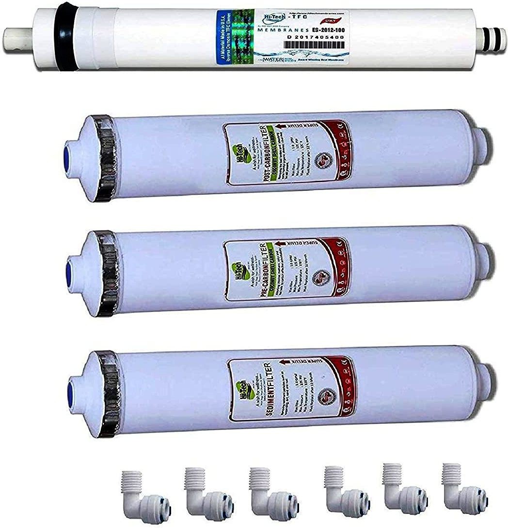 Hi-tech Water Purifier Filter Set and 100 GPD Water Purifier Membrane With Elbow Connecter For All RO Water Purifiers Working Upto 2000 TDS