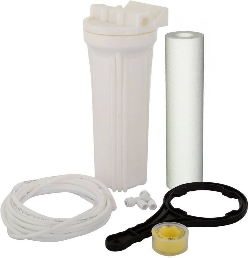 Package contacings :- 1 pre filter housing kit, 1 Spun Filter + 2 connectors 1/4 size ,2 Meter Pipe 1/4″ Size , 1 Teflon Tape, + Spanner Key