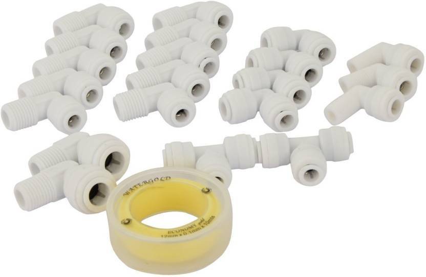 full accessories suitable for all kind RO Water purifier.packaging contain :- 1/4” one side push -10,Double push connector 1/4”-4, membrane H Connector 1/8”-3,T 3 push connector 1/4”-2 (ALL PIPE PUSH SIZE 1/4”), TEFLON-1, 1/4 male thread to 3/8″ pipe push elbow -2. NOTE- we request please do not place fake order must sure before order , after order must receive items , otherwise we block your ID